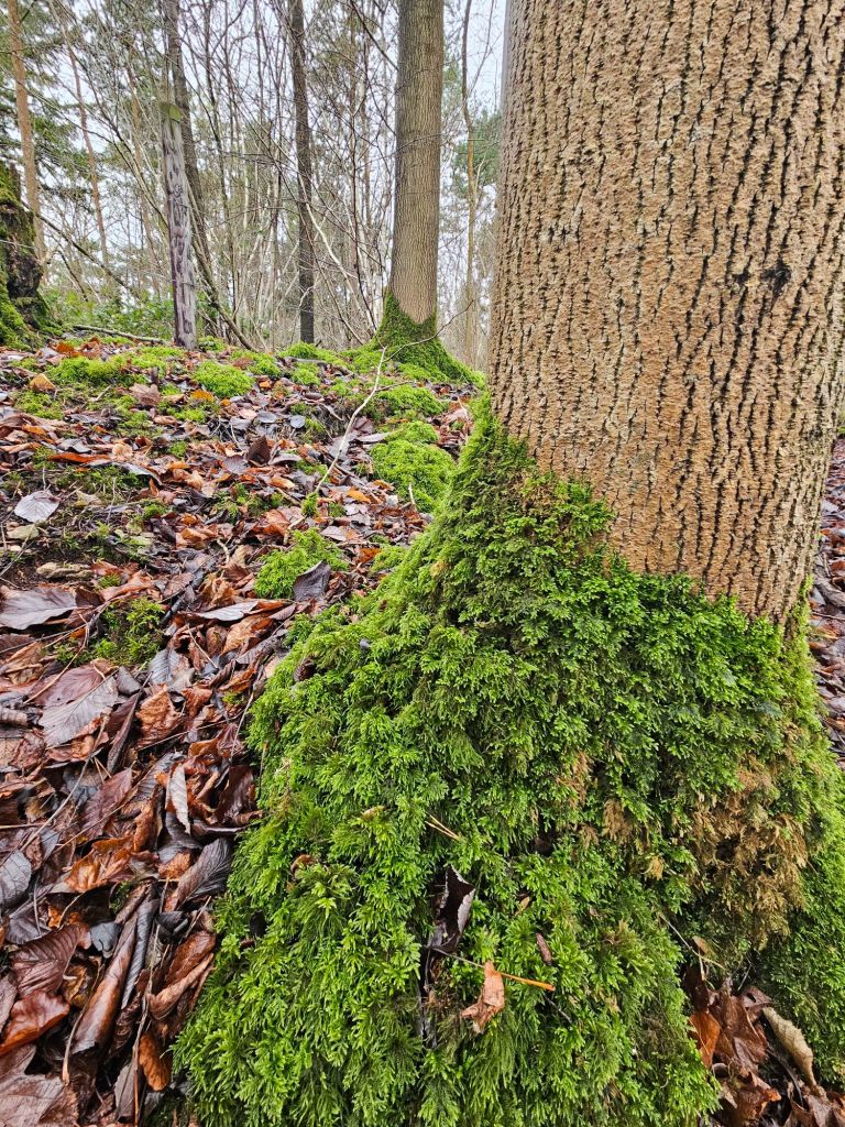 You will reach a narrow road with a stone building on your right, and a house in front of you. Leave the road here and head up, passing by the house and going through a kissing gate. Walk uphill and through another gate before entering the wood.