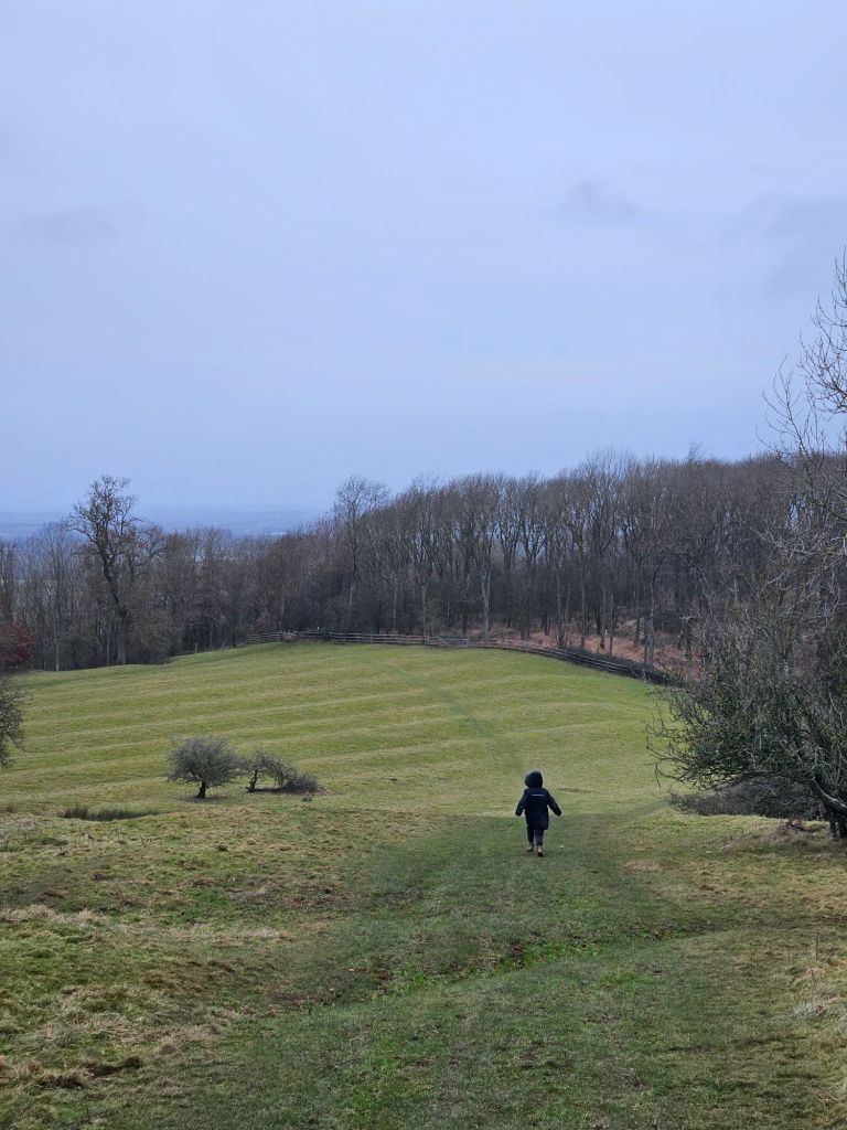 ACESSIBILITY: Moderate inclines and declines, wide grassy tracks on the hill and muddy paths through the woods. Some steep steps in sections. Kissing gates, no stiles.