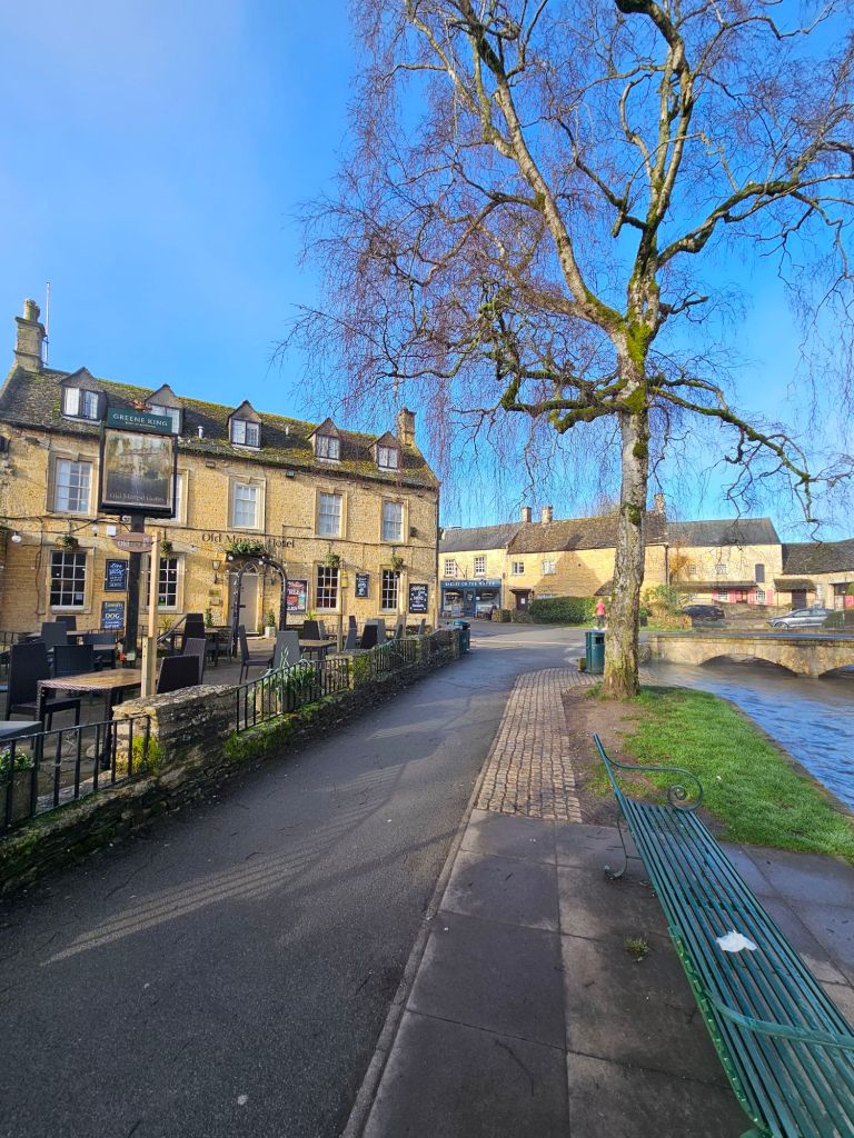 We always get to Bourton on the Water before 9 am at the latest. Any later and there are lots of tourists about including coaches, and the business feels a bit hectic for us. We much prefer to be early birds and have a wander with the place pretty much to ourselves. The shops and tearooms are still shut pre 9am, but the excellent Bakery on the Water has delicious food, treats, hot drinks, and breakfast to eat in or takeawy and is open from 8am.