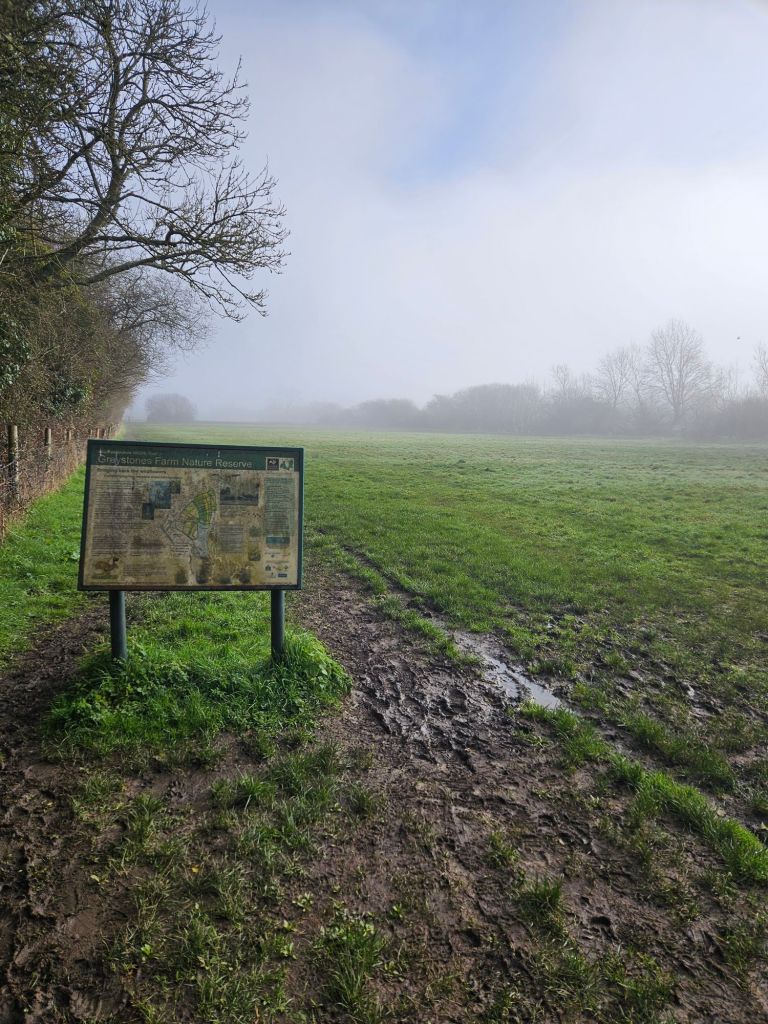 You will come out on to a tree lined track. Go straight ahead, crossing it, which takes you in to another field. You will see a nature reserve board ahead of you. This part of the trail is also signposted the Oxfordshire Way/ Gustav Holst Way.