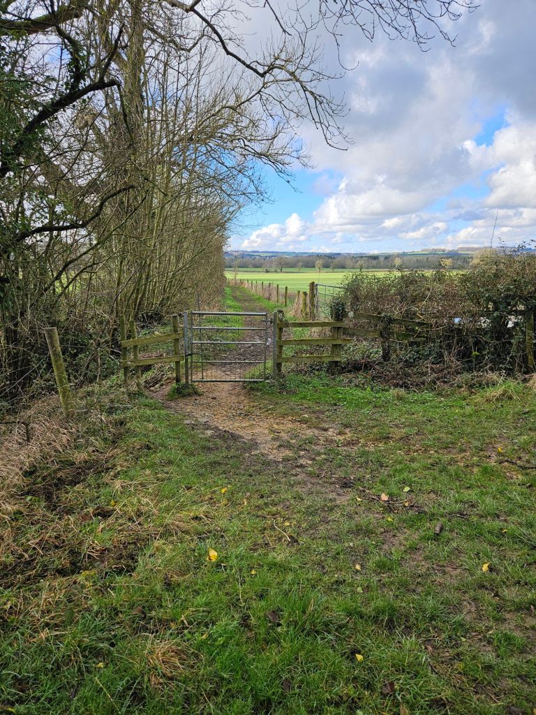 It is still signposted as a public footpath with arrow waymarkers. It takes you diagonally across the next field, bearing left, towards the road through Wyck Rissington.